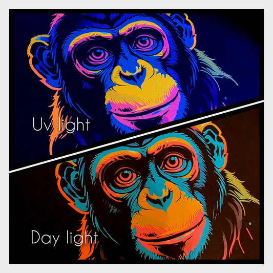 Uv Reactive Monkey neon animal print, A4, A3,wall art, poster, neon art