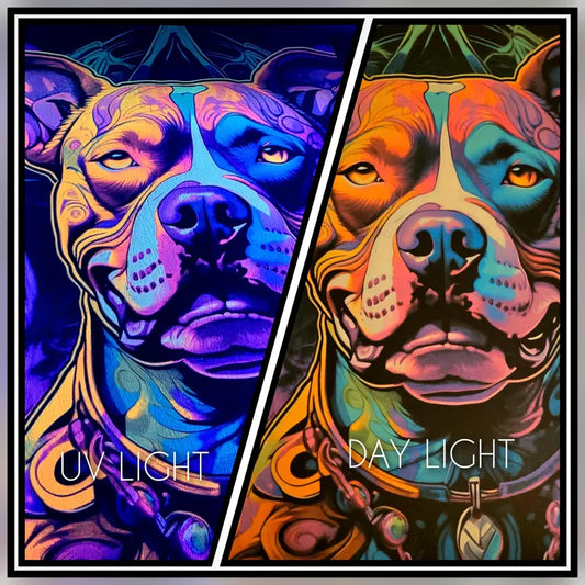 Uv Loving Memory xl bully Dog A4, A3,blacklight wall art, poster, glow in the dark