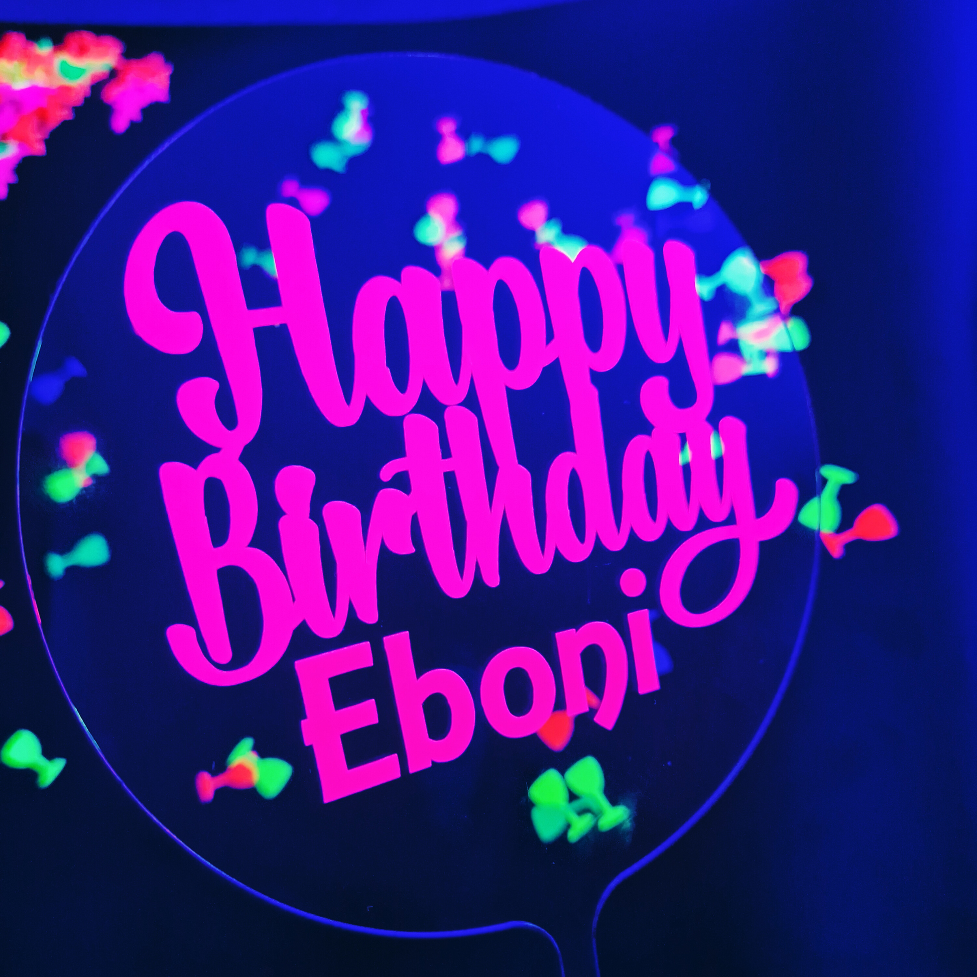 UV Glow Party Cake Topper, Neon Birthday Cake Topper, Neon Cake Décor Personalised Cake Topper, UV Reflective Cake Birthday Decoration