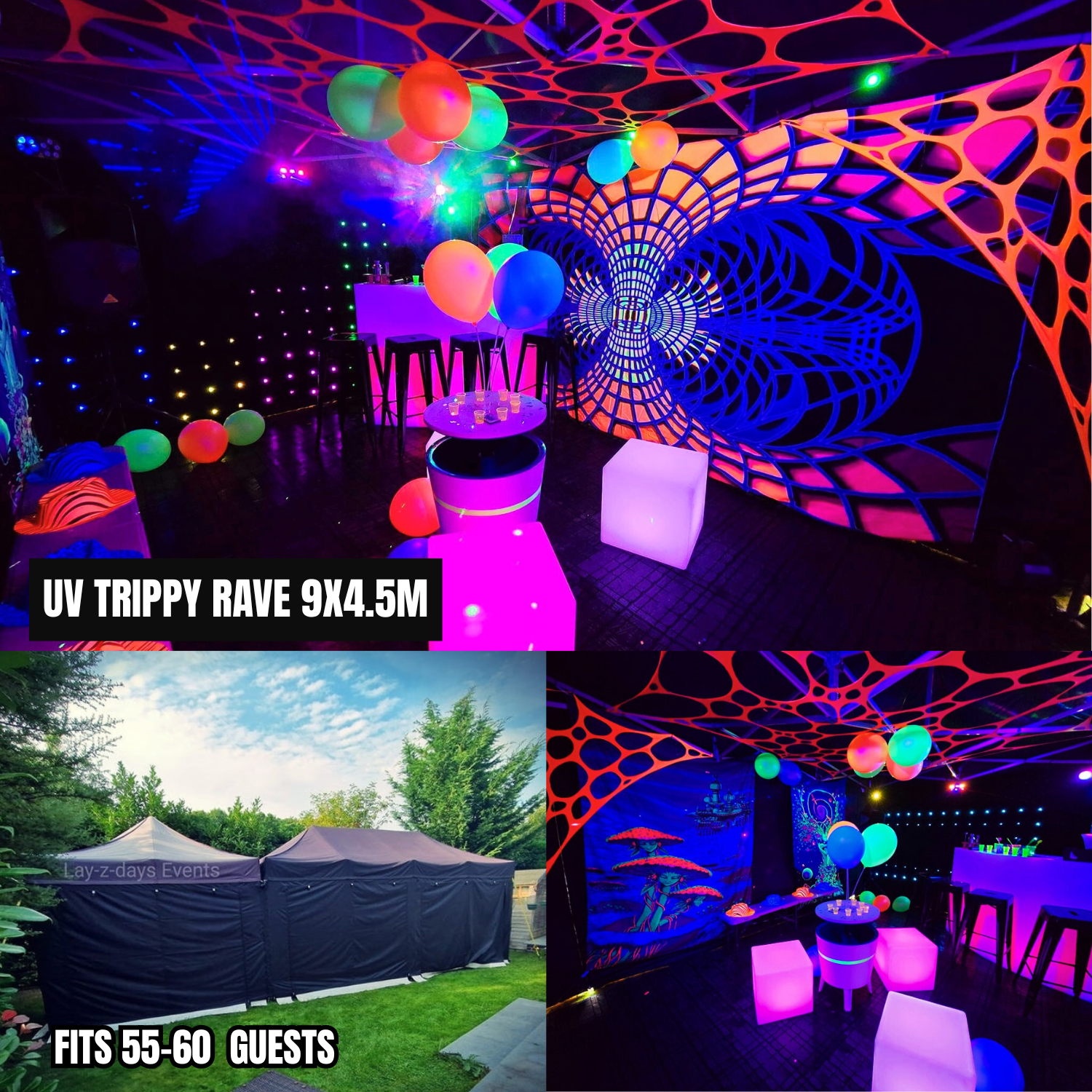 UV Trippy Rave Party Tent Hire 9x4.5m