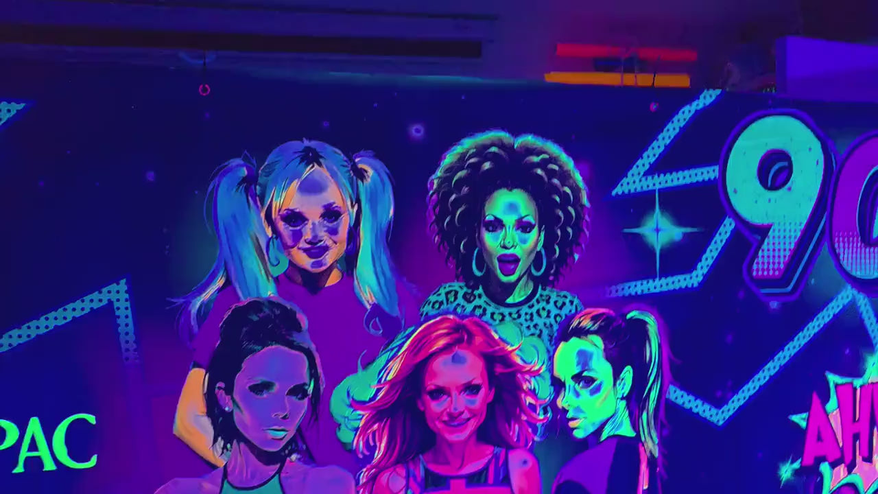 Uv Back to the 90s glow in the dark tapestry, neon blacklight party