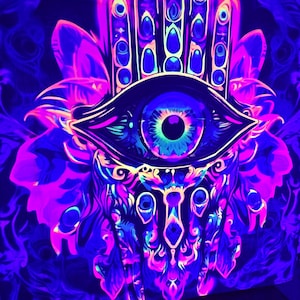 UitverkochtUv Blacklight amulet Hamsa tapestry