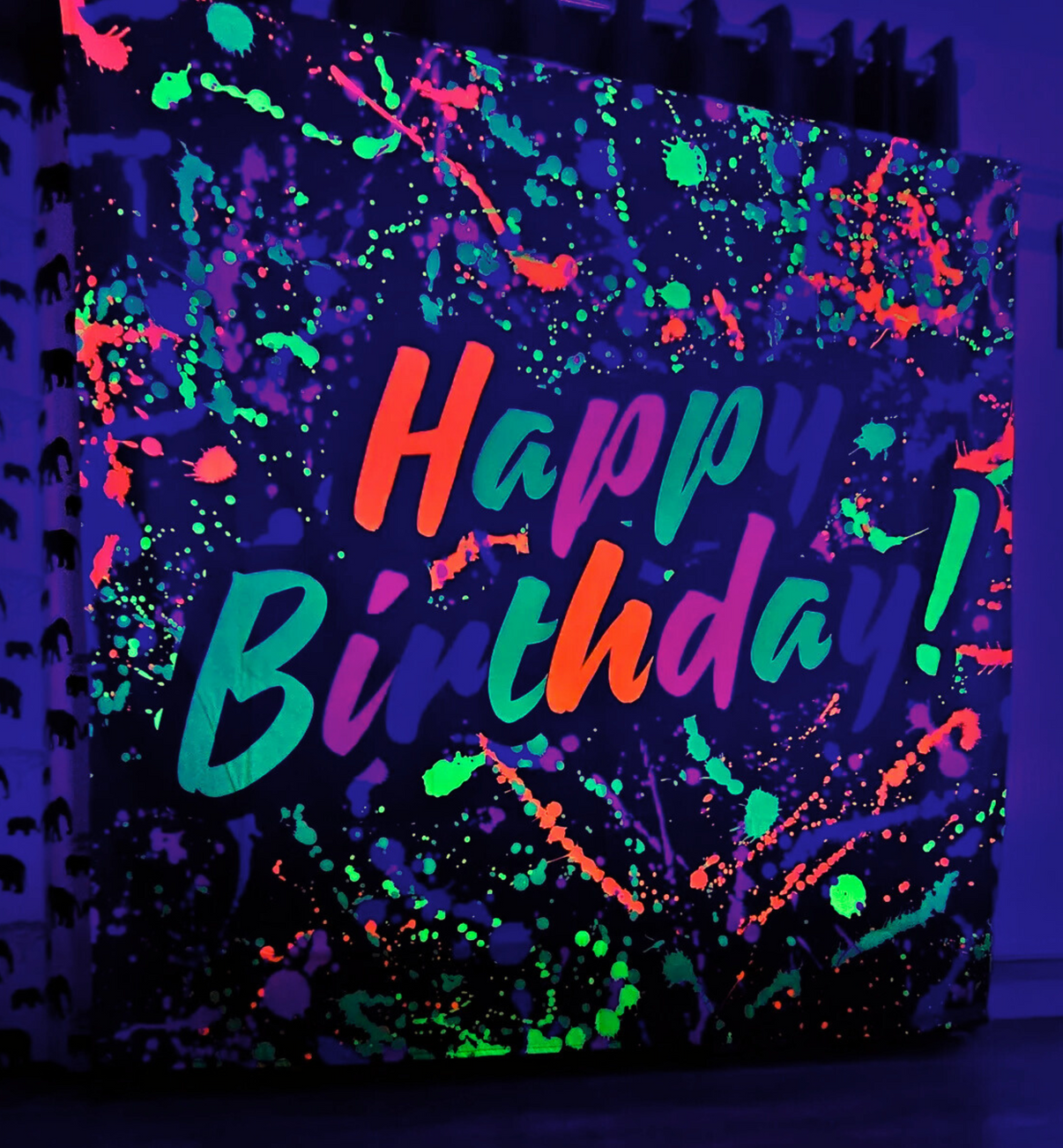 uv happy birthday glow party neon tapestry backdrop wall hanging