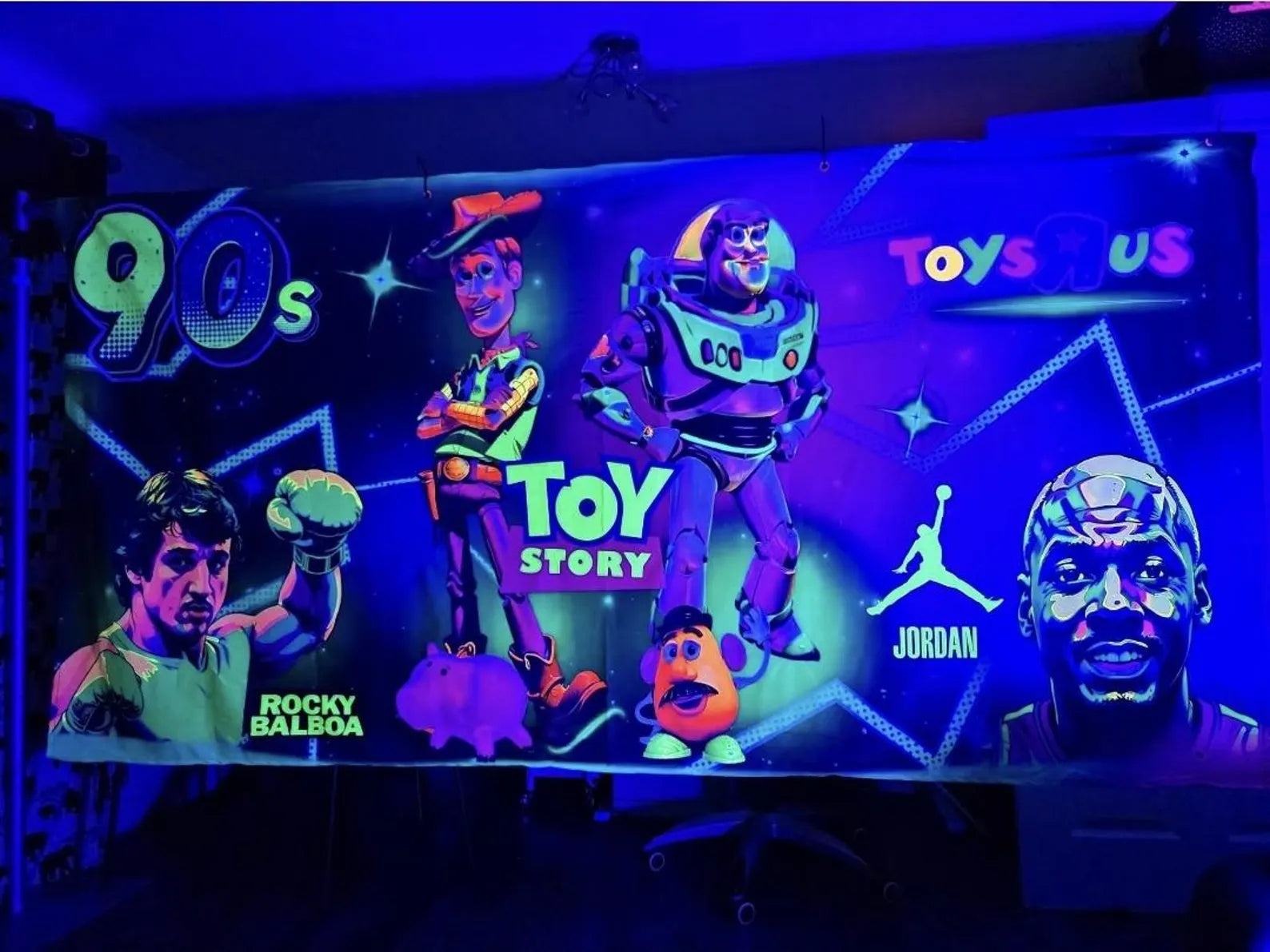 Uv Back to the 90s glow in the dark tapestry, neon blacklight party
