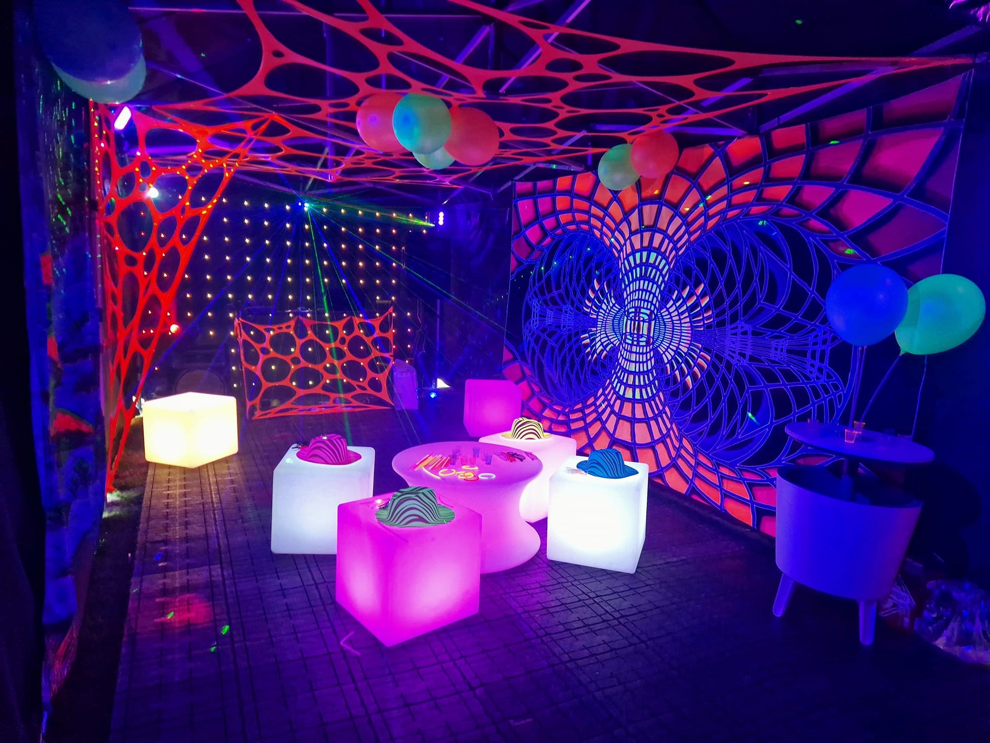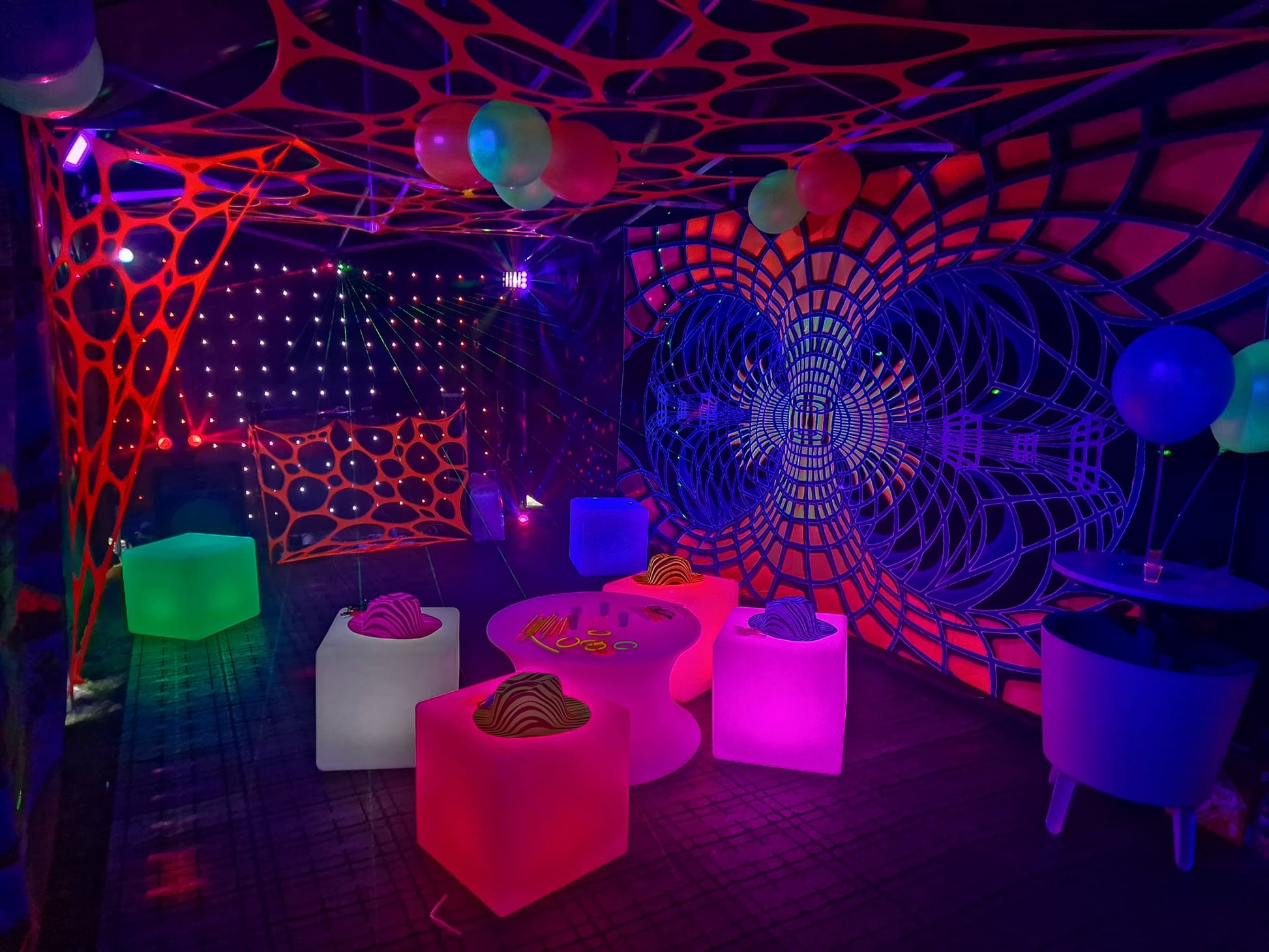 Transform Your Event with Stunning UV Reactive Stretch Webbing Décor!