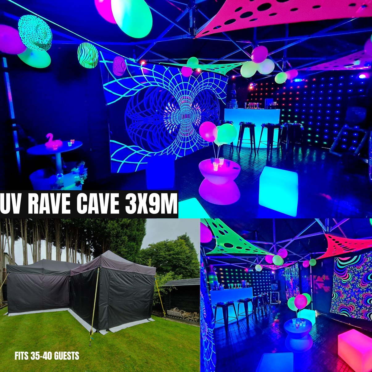 • Uv Rave Cave decor throughout the tent as seen in listing photos