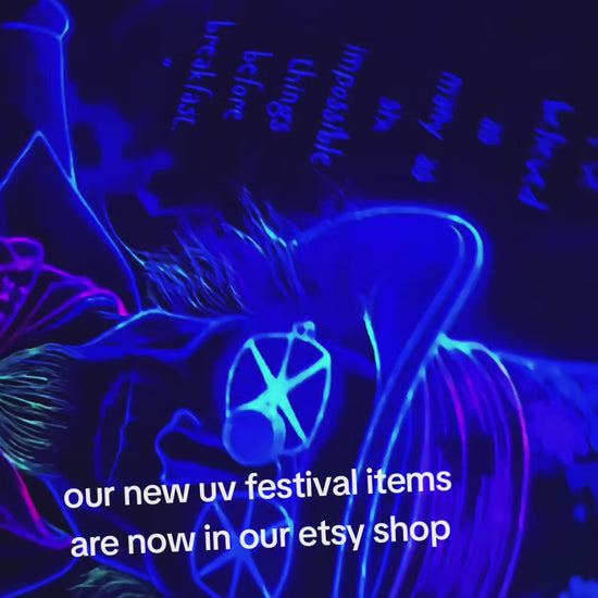 🌈 Stand out and shine under the lights! Our UV Reactive Festival Parasols, Blacklight sun shade umbrella, your must-have rave and festival accessories. Designed for style, comfort, and instant glow, these lightweight, portable pieces will keep you cool and vibrant day or night.