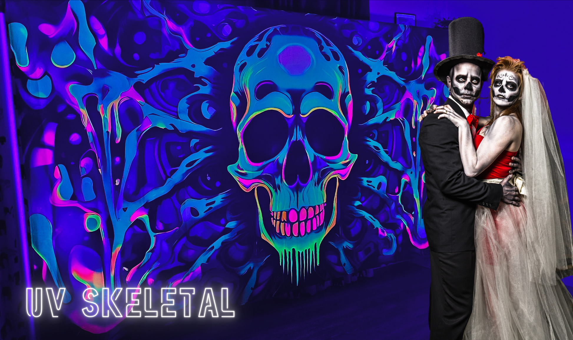 Uv wall hanging Halloween party skeleton tapestry, blacklight Halloween party,Glow in the dark tapestry. Transform your Halloween party with a difference this year with the amazing uv reactive neon party Halloween decoration.